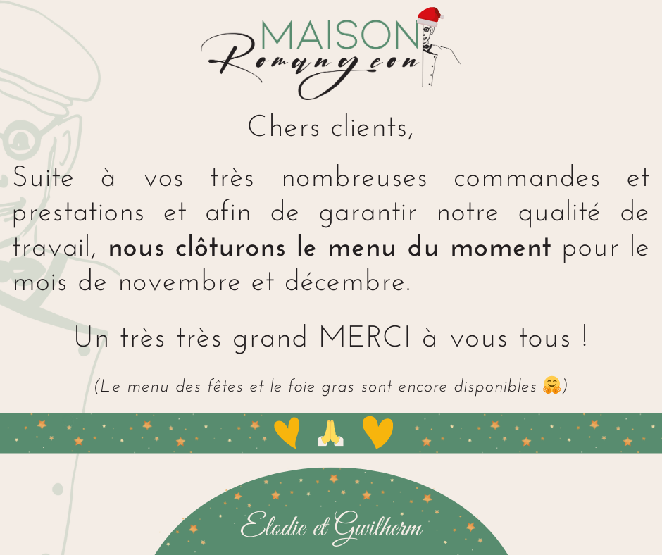 Pour toutes commandes de plus de 8 personnes, merci de prévenir 48h à l’avance.
